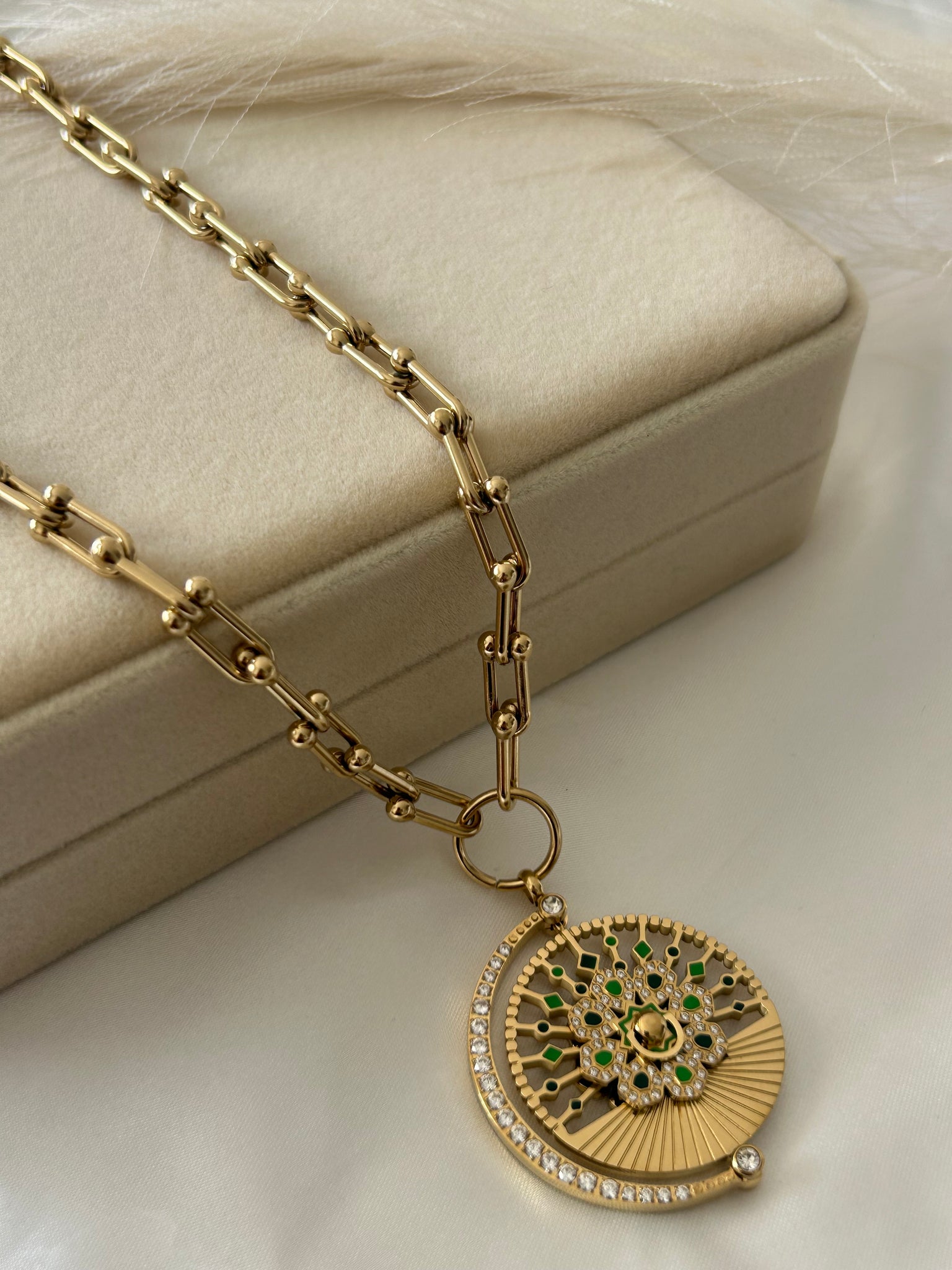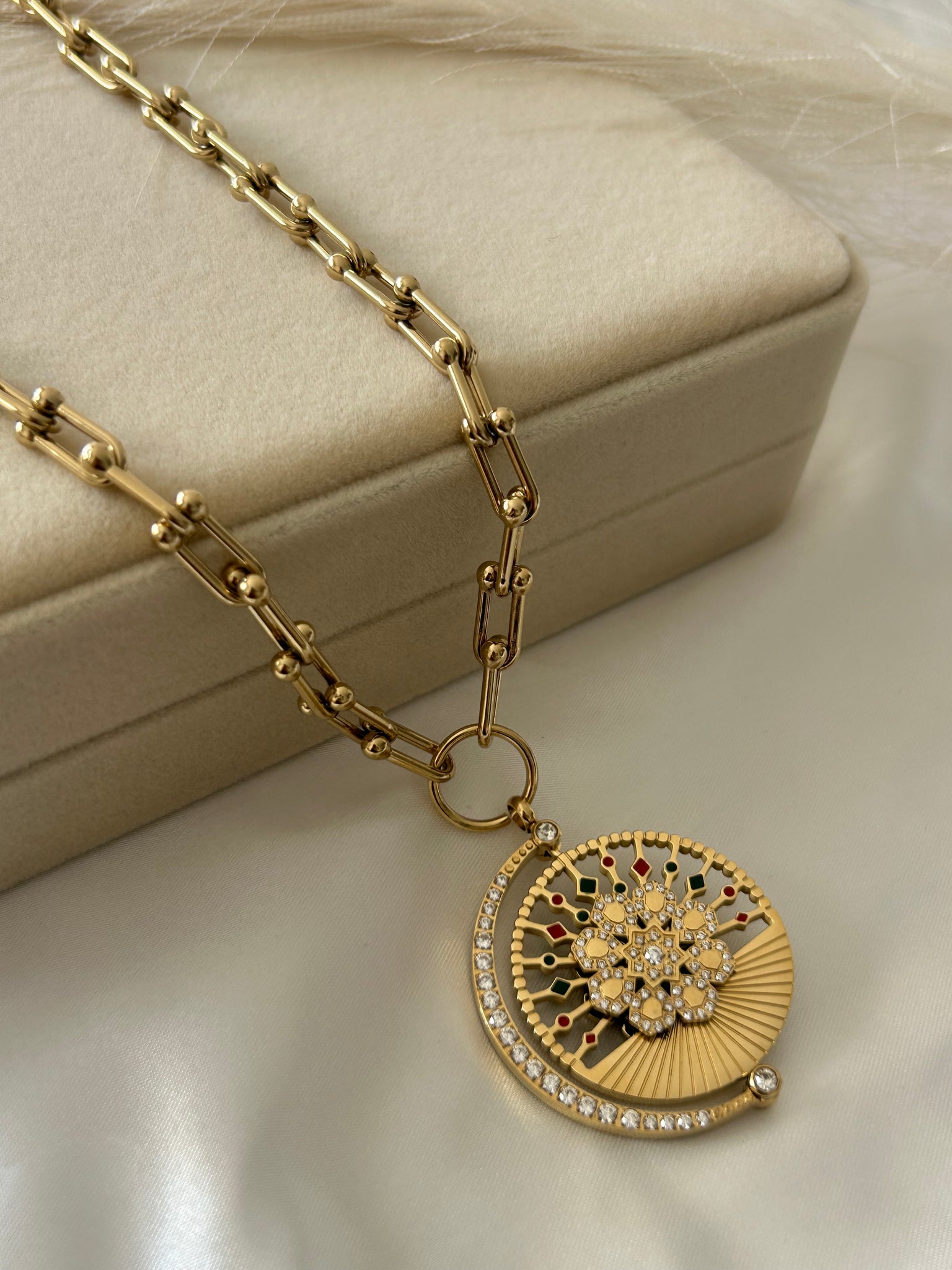 Alliez élégance et praticité avec ce sautoir raffiné au pendentif réversible. Conçu pour être porté des deux côtés, il s’adapte à toutes vos envies et complète parfaitement vos tenues, du quotidien aux occasions spéciales.
